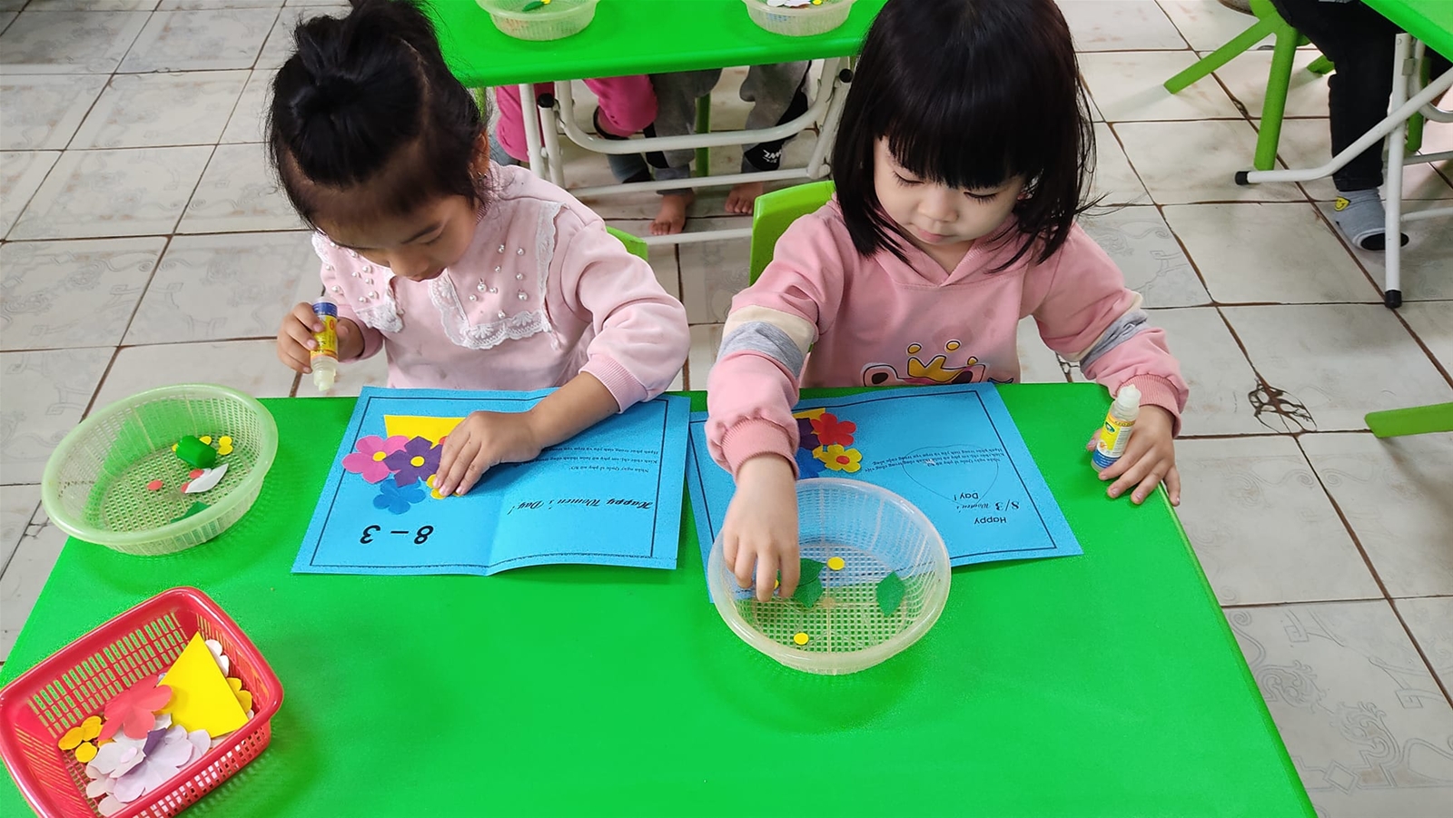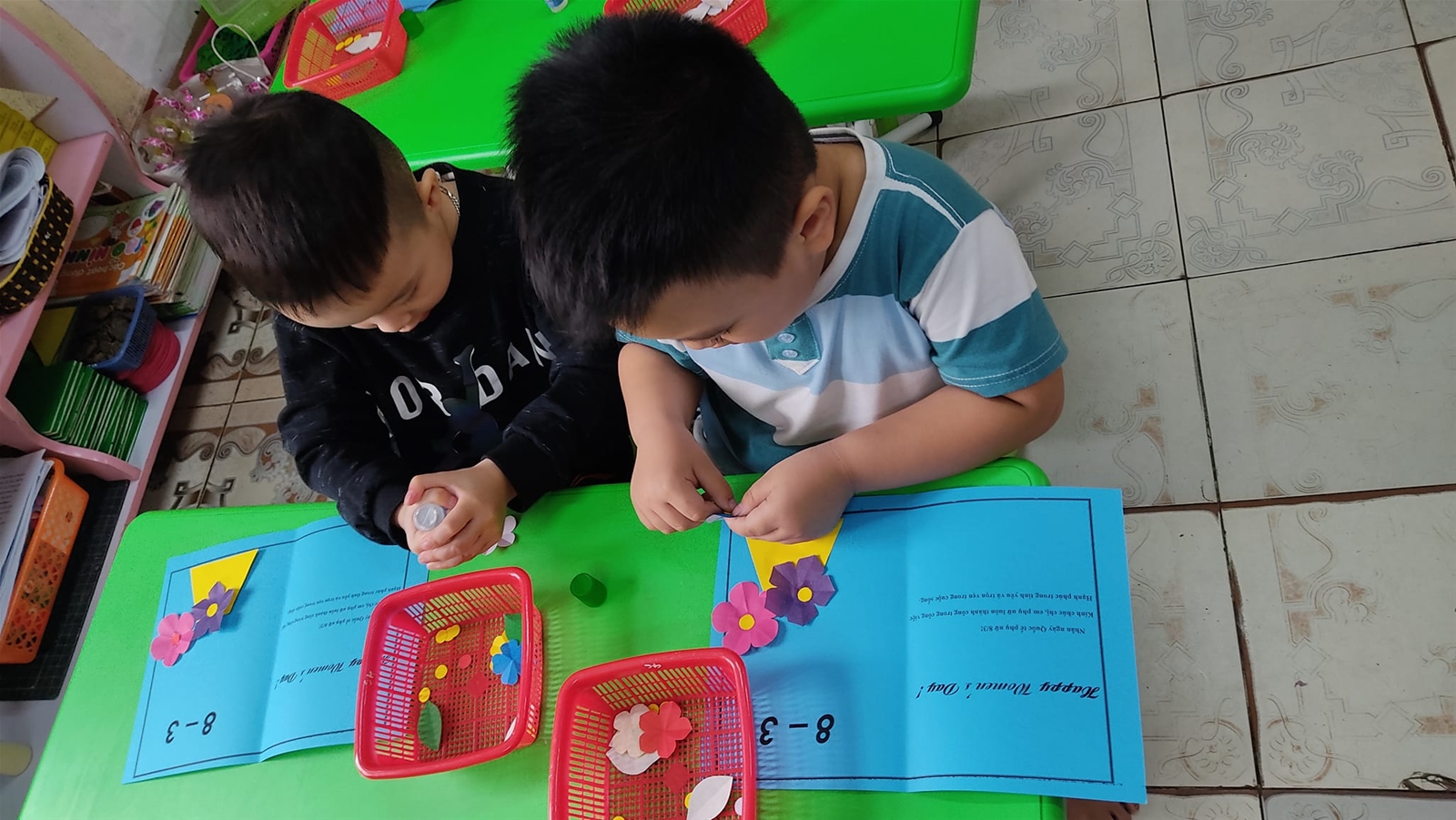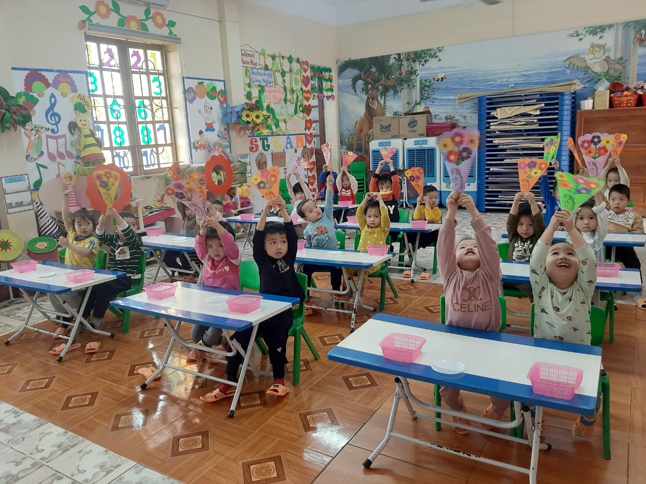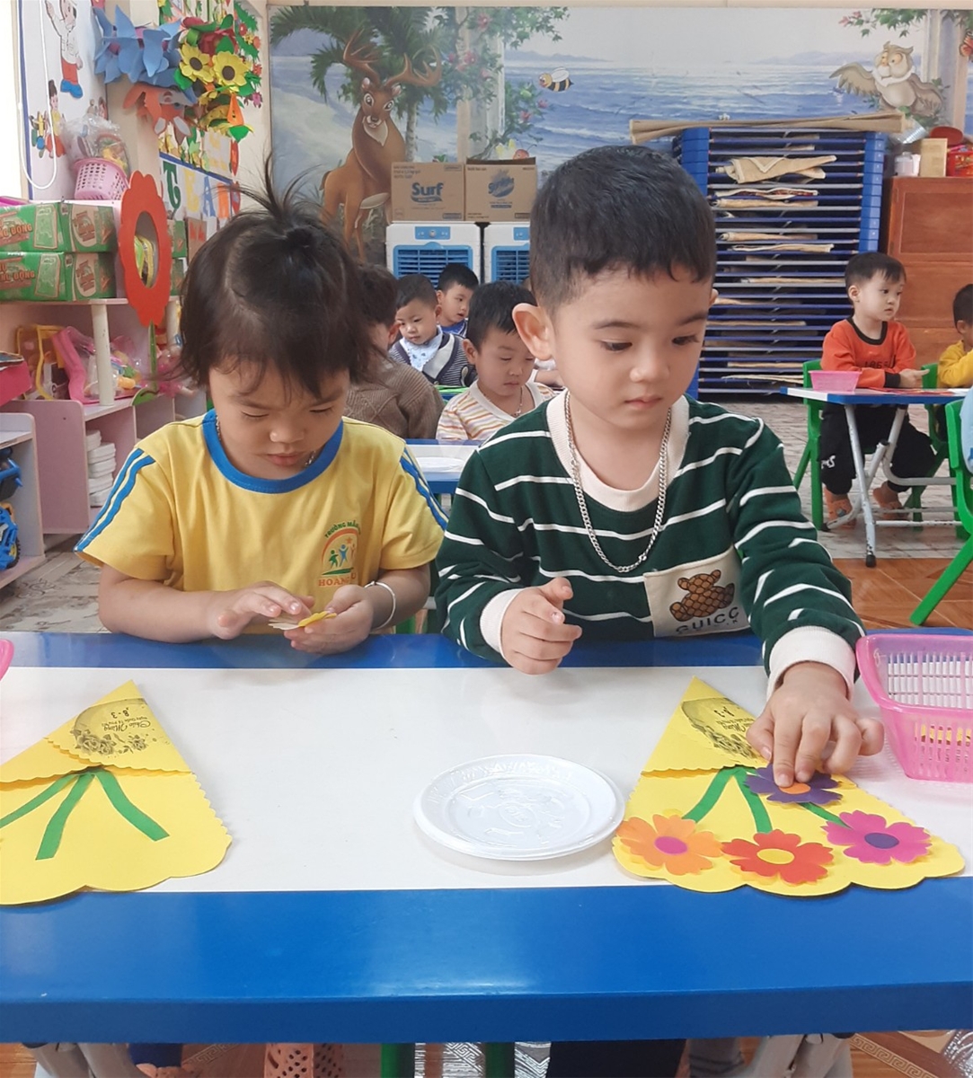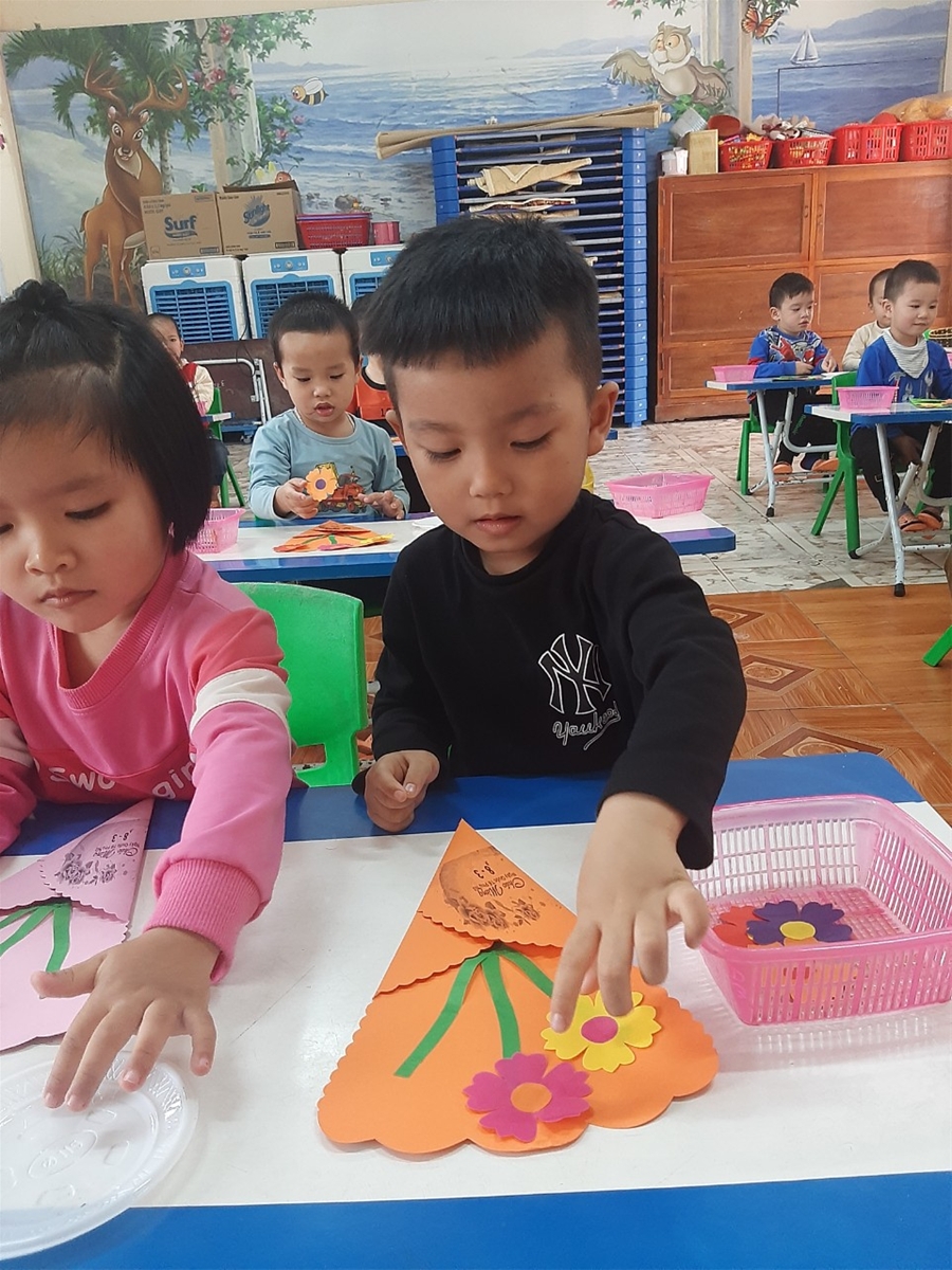 Để giúp các con có buổi trải nghiệm thật ý nghĩa, chuyên môn chỉ đạo các lớp tổ chức tại các nhóm lớp vào buổi chiều. Giáo viên của các lớp đã chuẩn bị rất nhiều các nguyên vật liệu khác nhau để trẻ được thực hành trải nghiệm, rèn luyện các thao tác, kỹ nằng và sự khéo léo để làm được những tấm bưu thiếp đẹp, cắm những giỏ hoa thật xinh, gói những món quà thật cẩn thận.